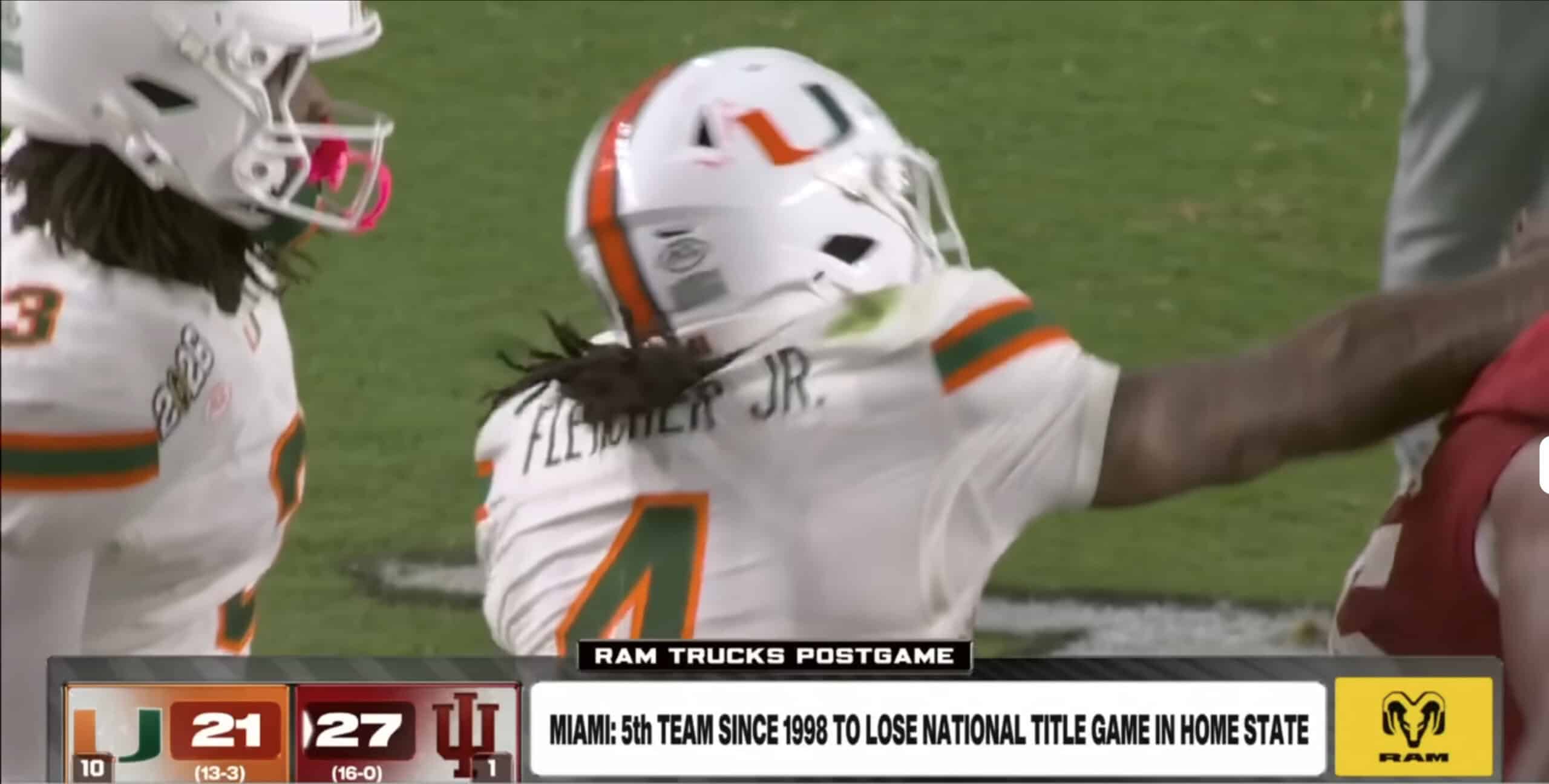 For Fletcher, this incident was especially disheartening. The South Florida native had one of his best showings in front of a national audience. He rushed for 112 yards on 17 carries, scored two touchdowns, and caught a pass for eight yards. His impressive 57-yard touchdown run in the third quarter pushed him past Ezekiel Elliott to claim the record for the most career rushing yards in CFP history.